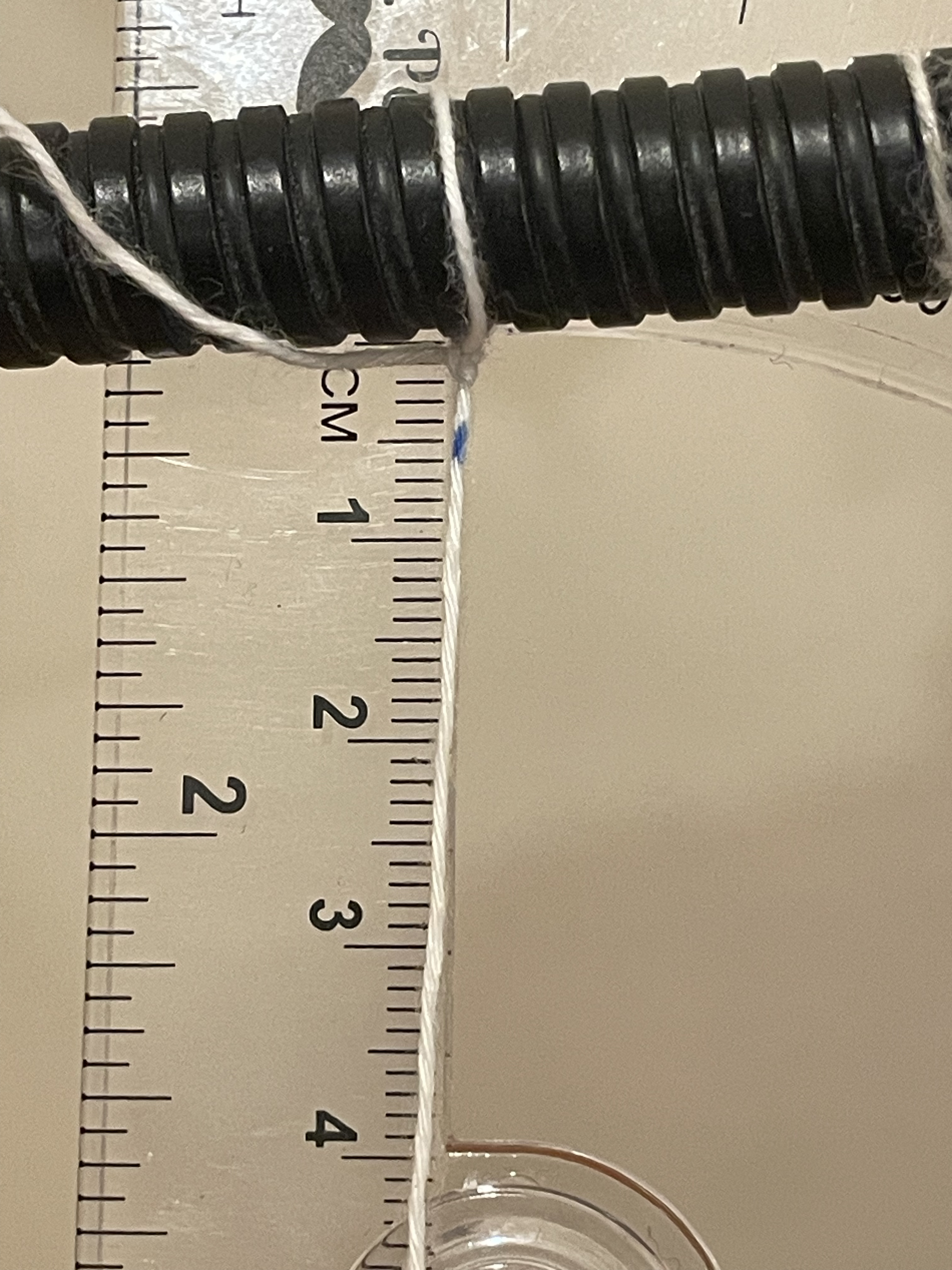 This time I marked string’s length exact with the edge of a sheet of paper (11 x 8.5in) and accounted for a little 0.5cm leftover when tying:
